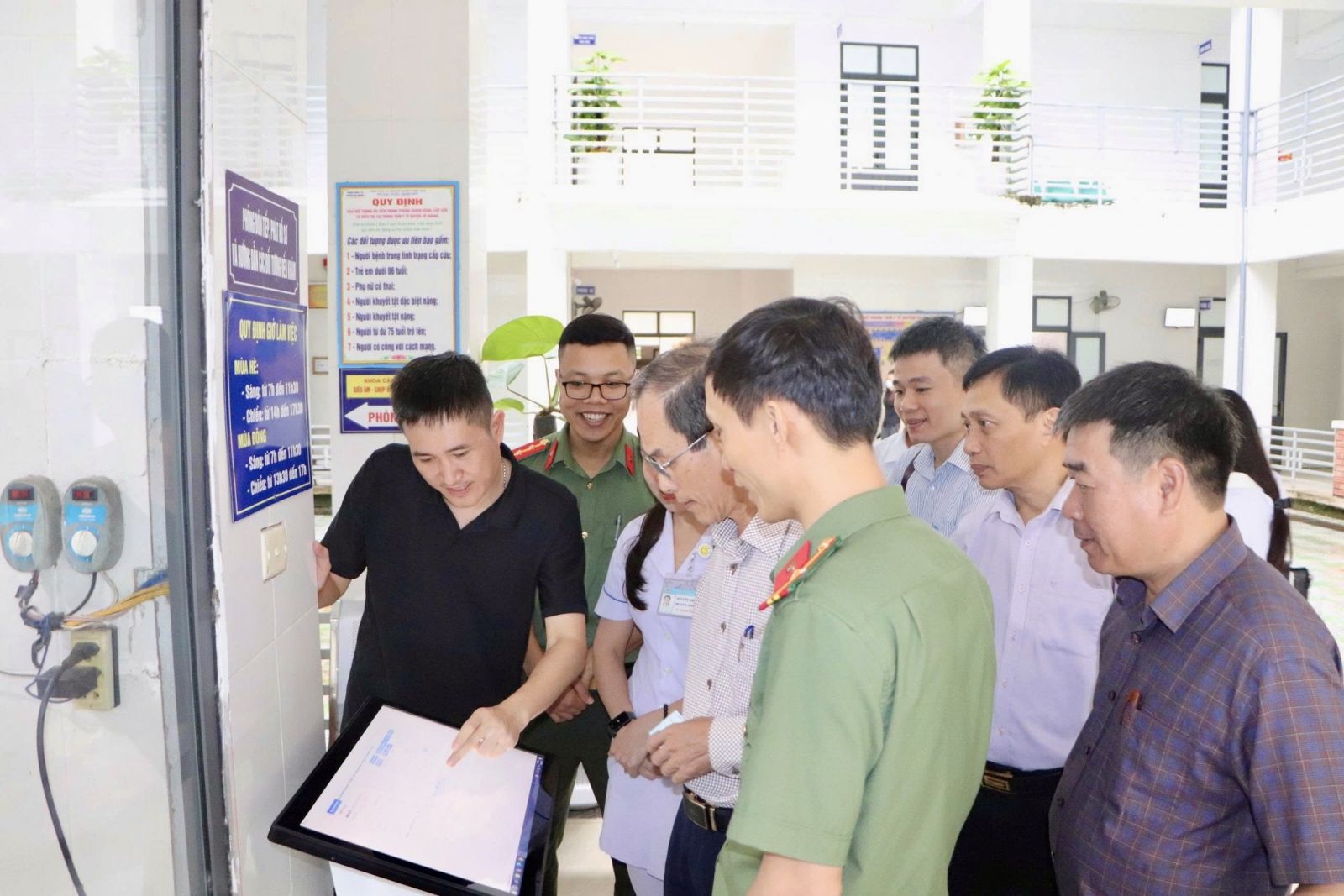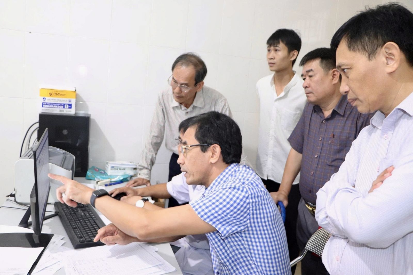 Đoàn công tác Sở Y tế và các đại biểu tham quan và kiểm tra việc thực hiện EMR tại các khoa, phòng