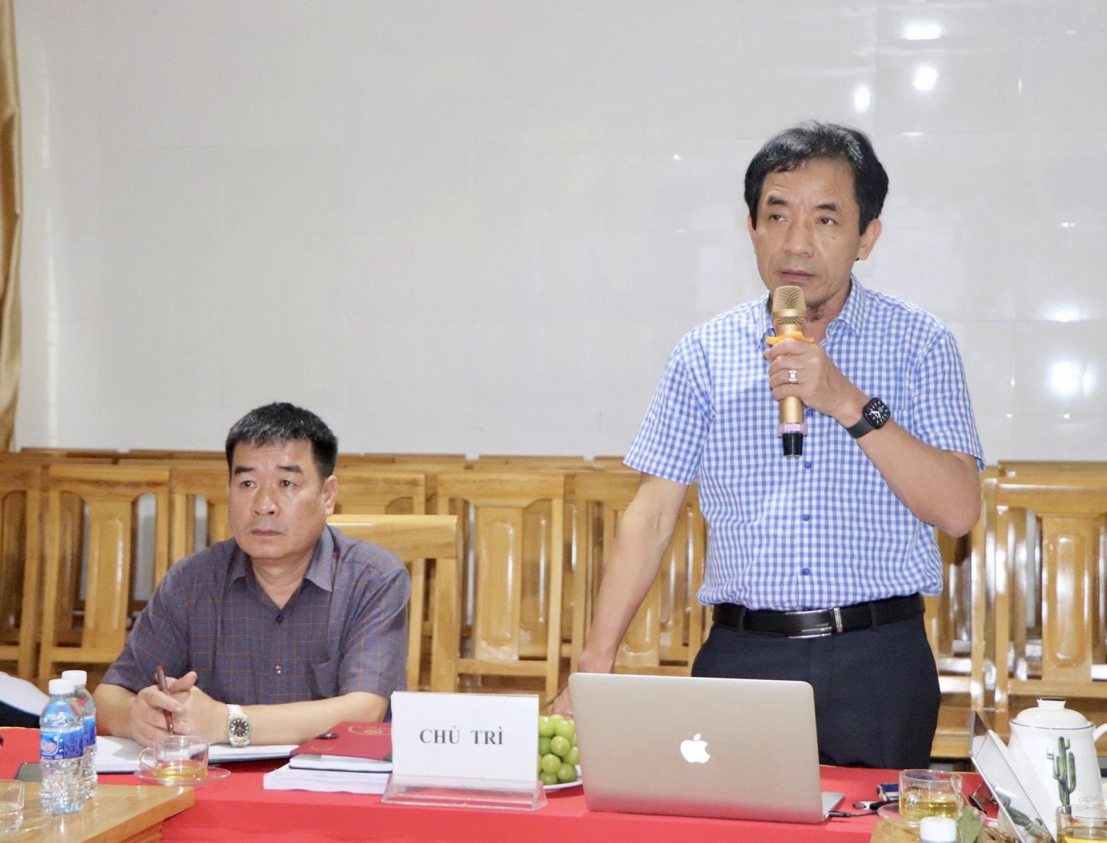 Bác sỹ Nguyễn Văn Toại, Giám đốc Trung tâm Y tế Vũ Quang báo cáo công tác thực hiện EMR tại đơn vị